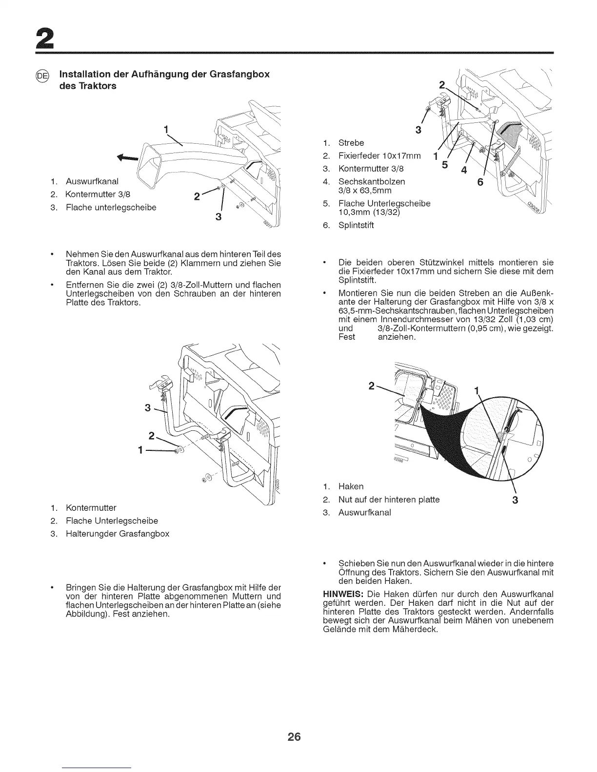 hinteren Platte des Traktors gesteckt werden. Andernfalls
