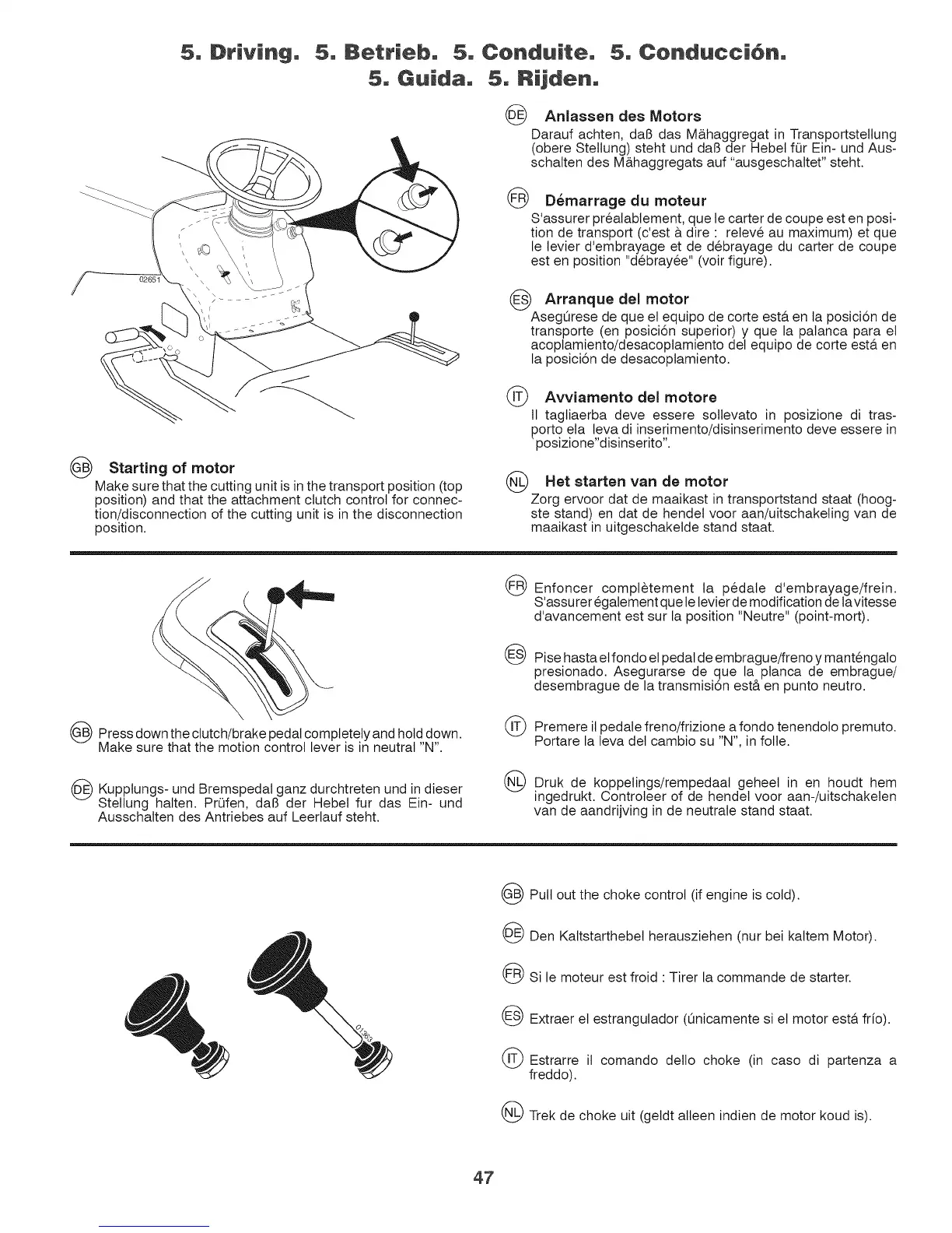 (_) Trek de choke uit (geldt alleen indien de motor koud is).
