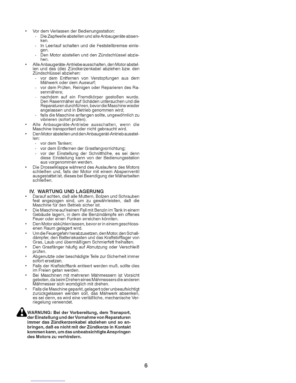 • Die Maschine auf keinen Fall mit Benzin im Tank in einem