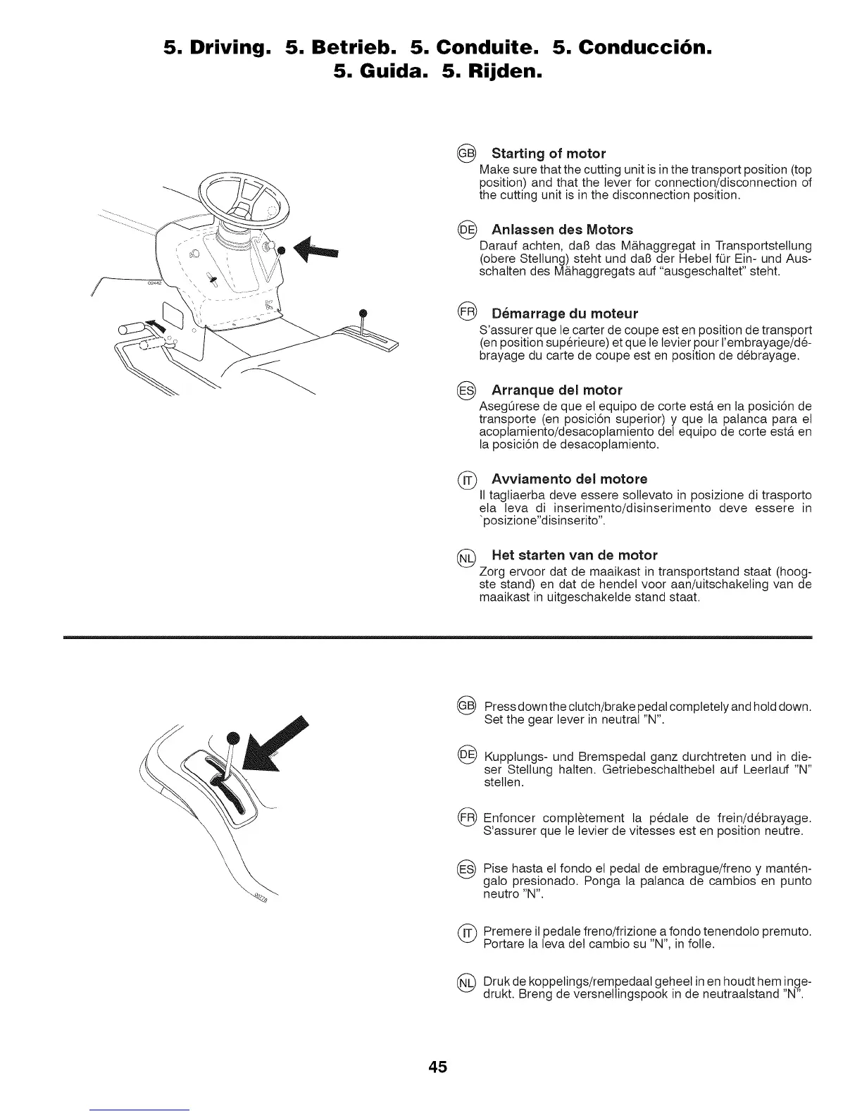 5. Driving. 5. Betrieb. 5. Conduite. 5. Conducci6n.