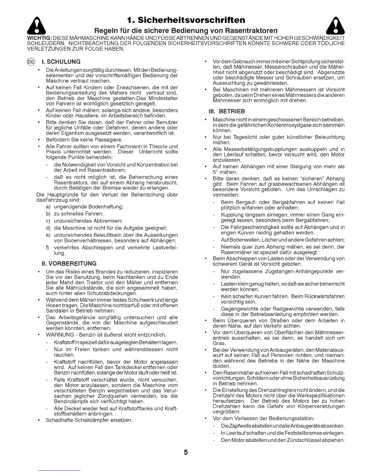 Regeln f_r die sichere Bedienung von Rasentraktoren
