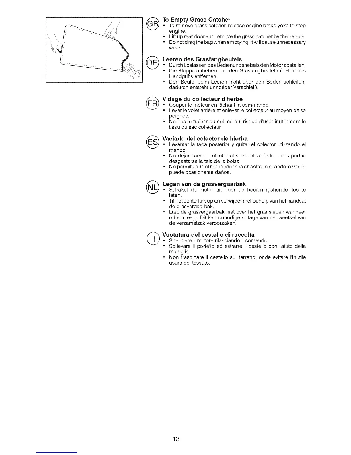 (_ Vidage du collecteur d'herbe• Couper le moteur en I&chant la commande.