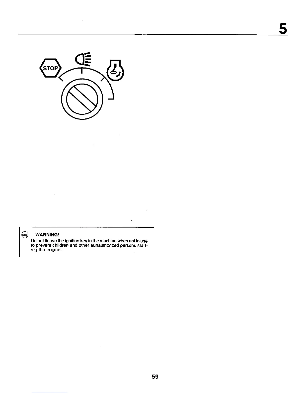 Do not fleave the ignition key inthe machine when not in use