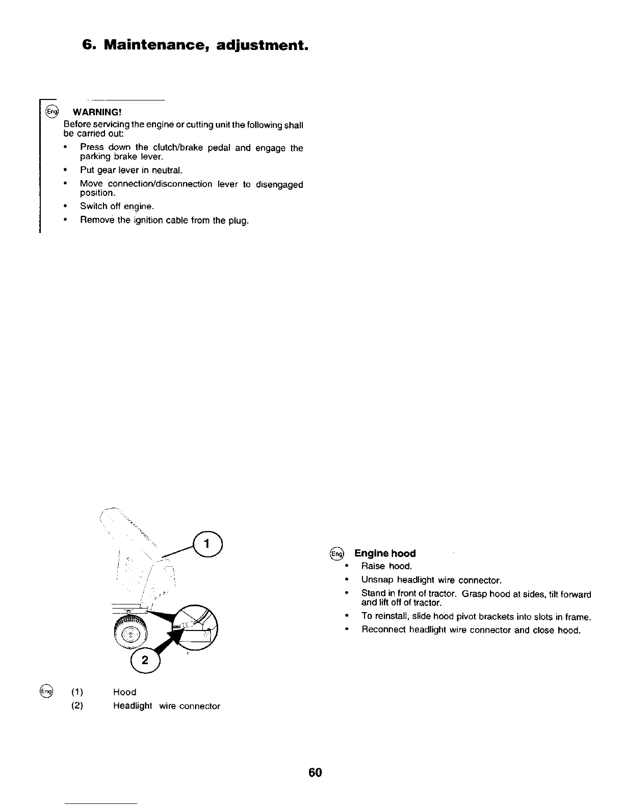 Stand in front of tractor. Grasp hood at sides, tilt fonNard