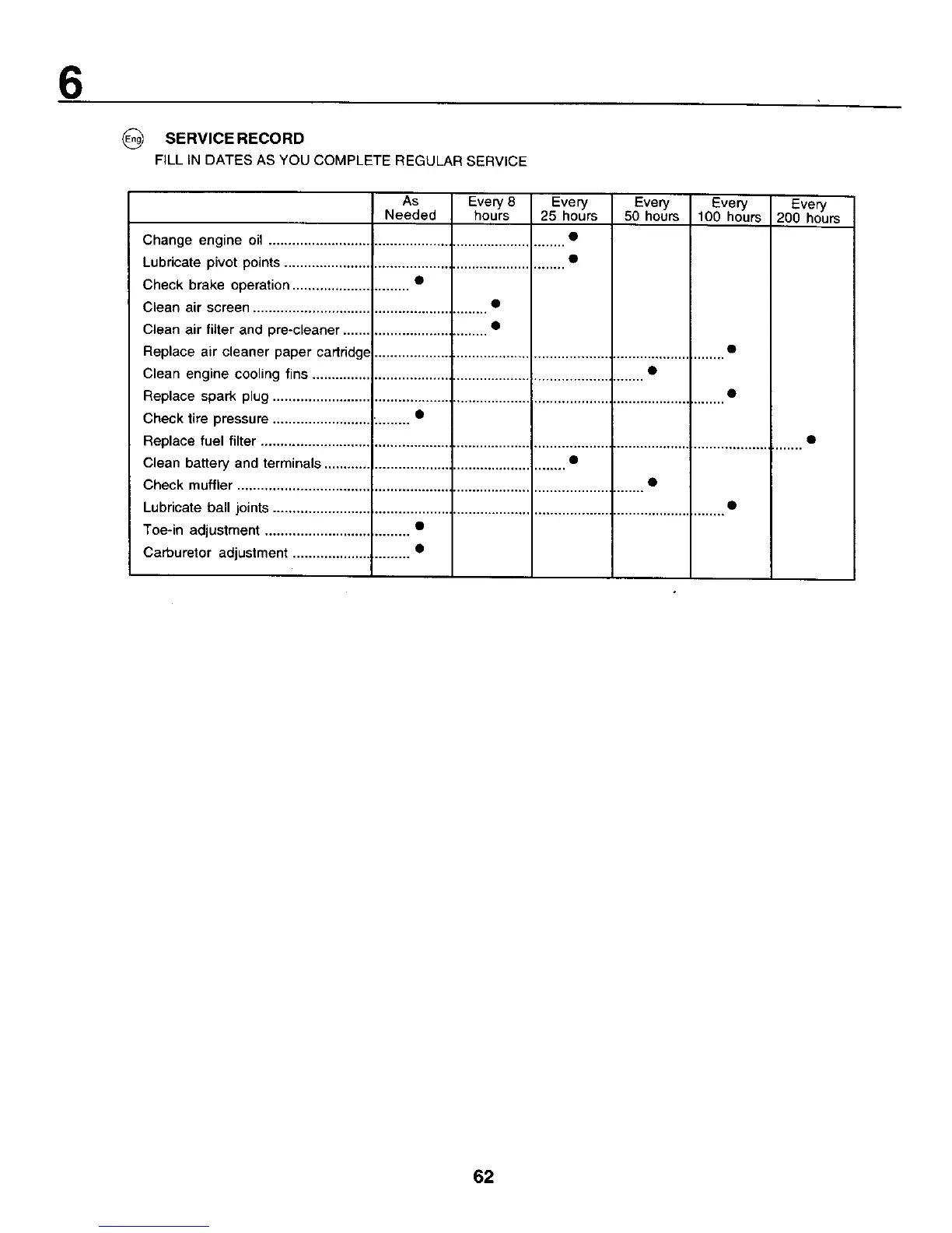 FILL IN DATES AS YOU COMPLETE REGULAR SERVICE