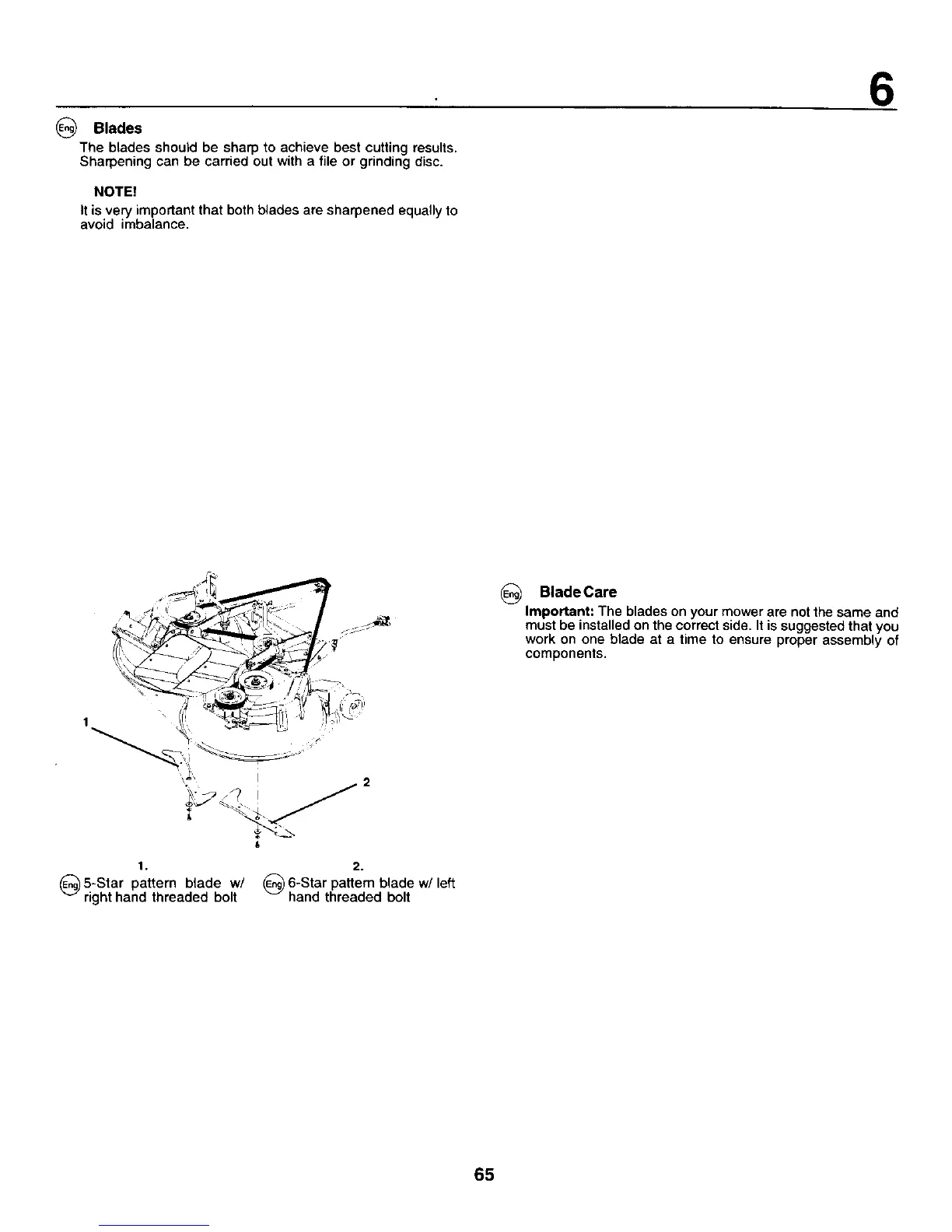 Important: The blades on your mower are not the same and