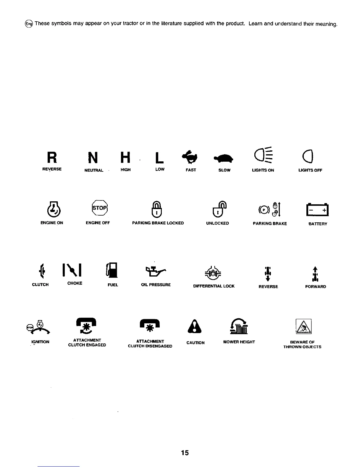 (_ These symbols may appear on your tractor or in the literature supplied with the product. Learn and understand their meaning.