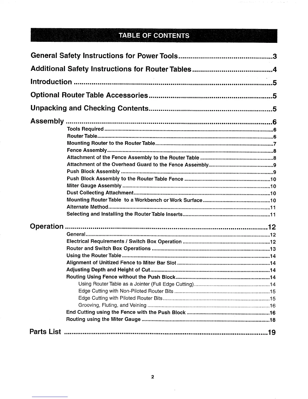 Optional Router Table Accessories ............................................................... 5