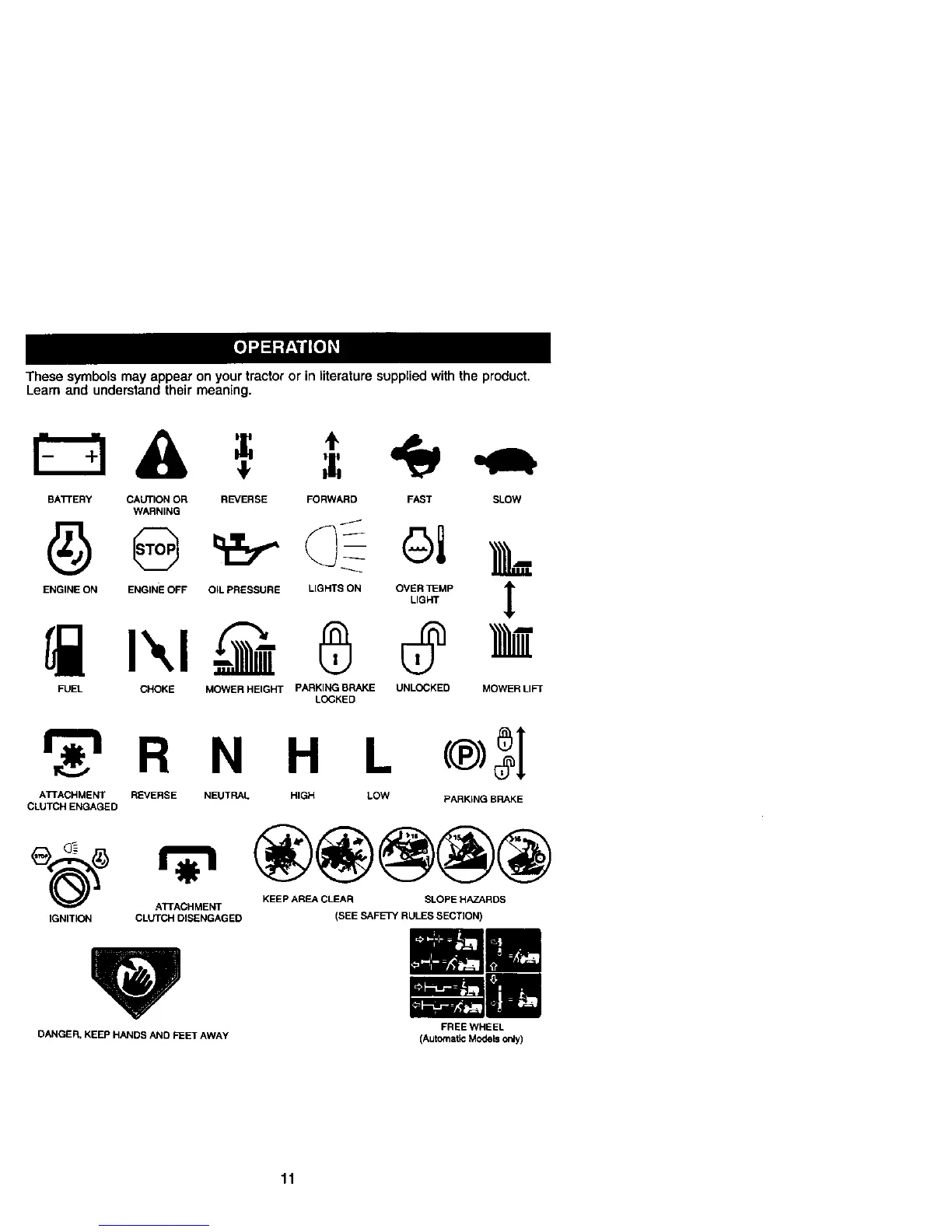 FUEL CHOKE MOWER HEIGHT PARKING BRAKE UNLOCKED