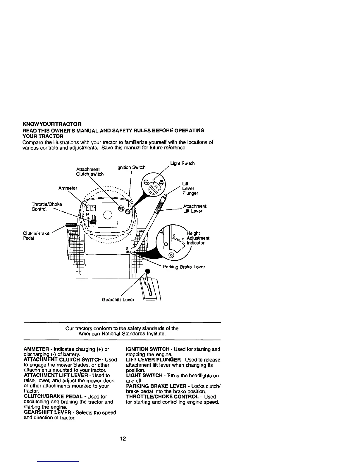 Compare the illustrationswith your tractor to familiarize yourself with the locations of
