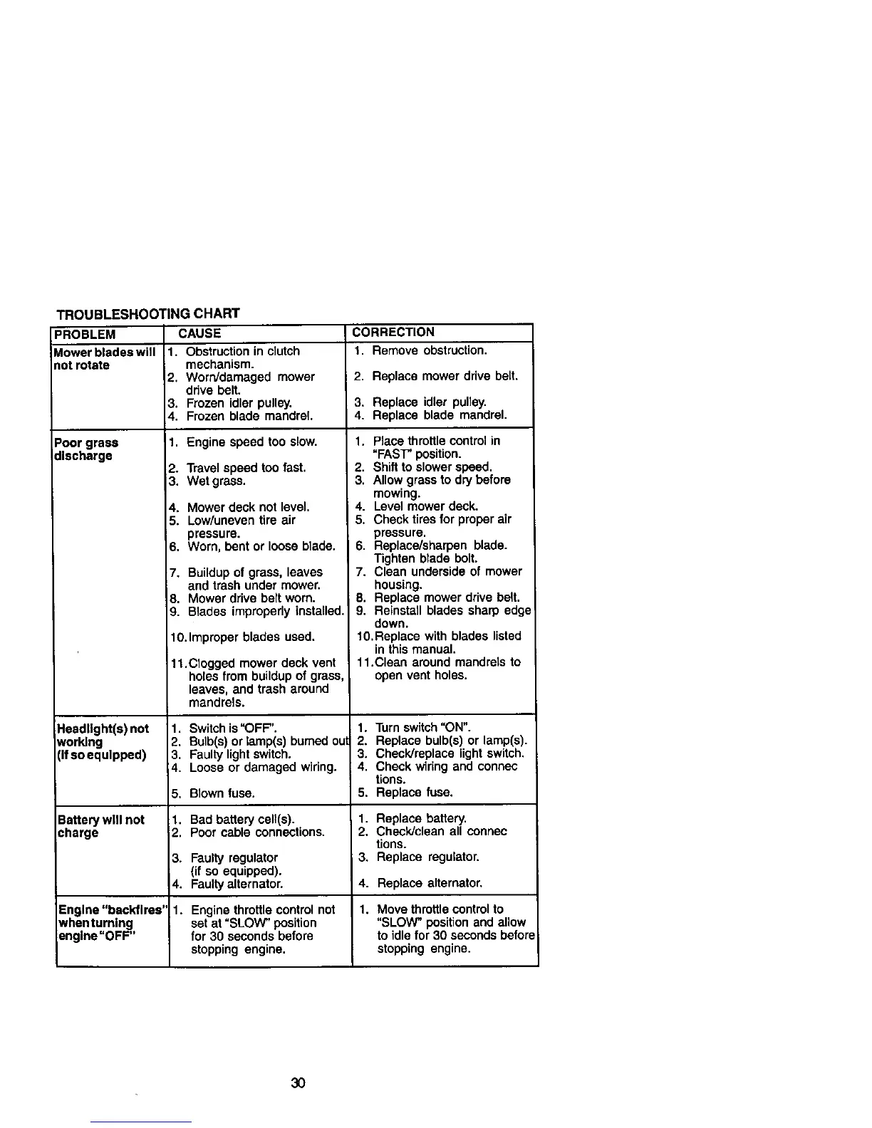 I_1owerbladeawill 1. Obstruction in clutch 1. Remove obstruction.