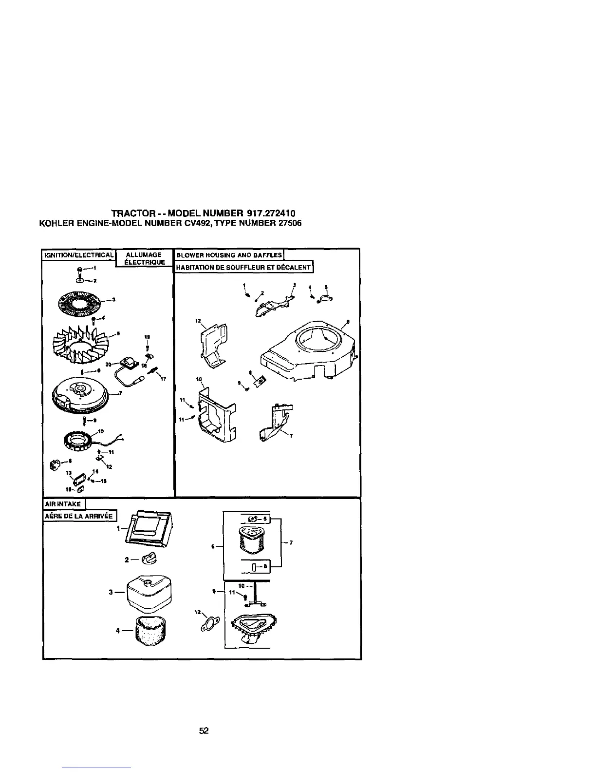 Craftsman 272 - IGNITION;ELECTRICAL; BLOWER HOUSING AND BAFFLES; AIR INTAKE