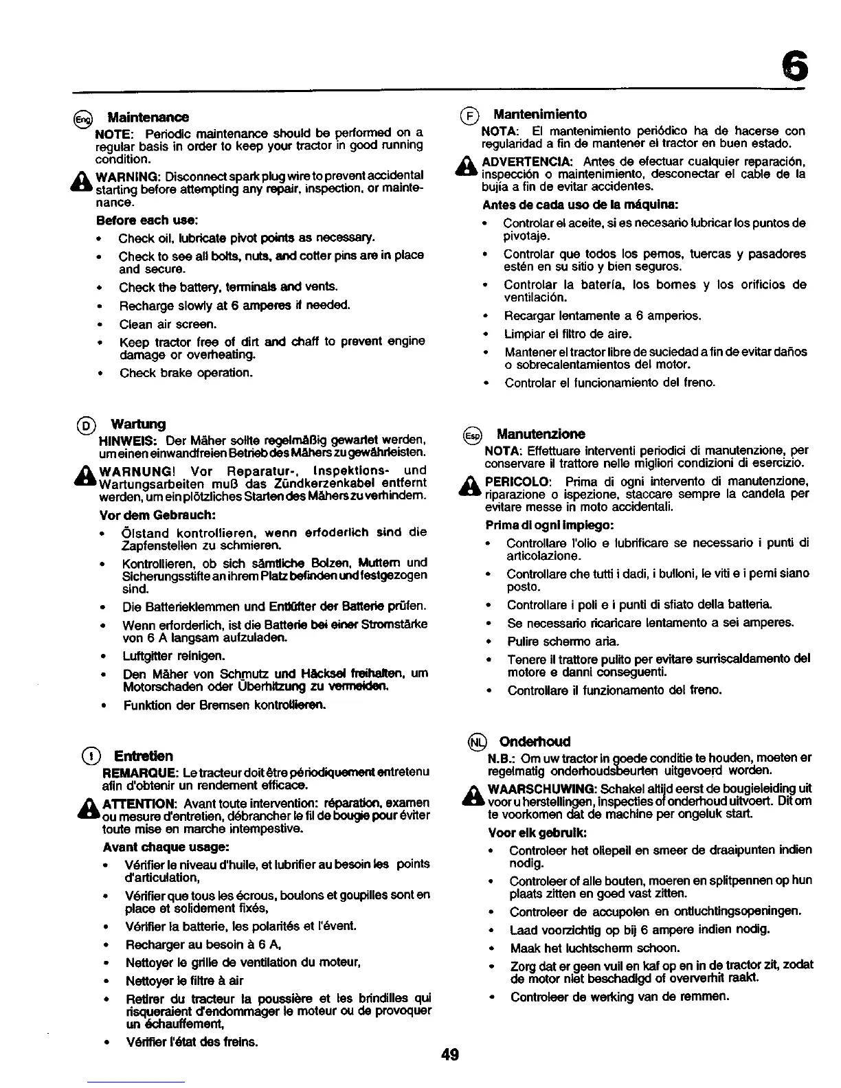 N.B.: Om uw tractor in gcede conditie te houden, moeten er