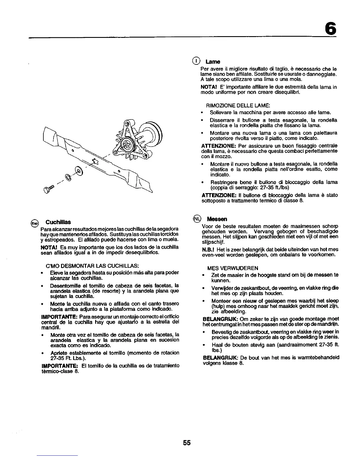 IMPORTANTE: El tomillo de la cuchilla es de tratamianto