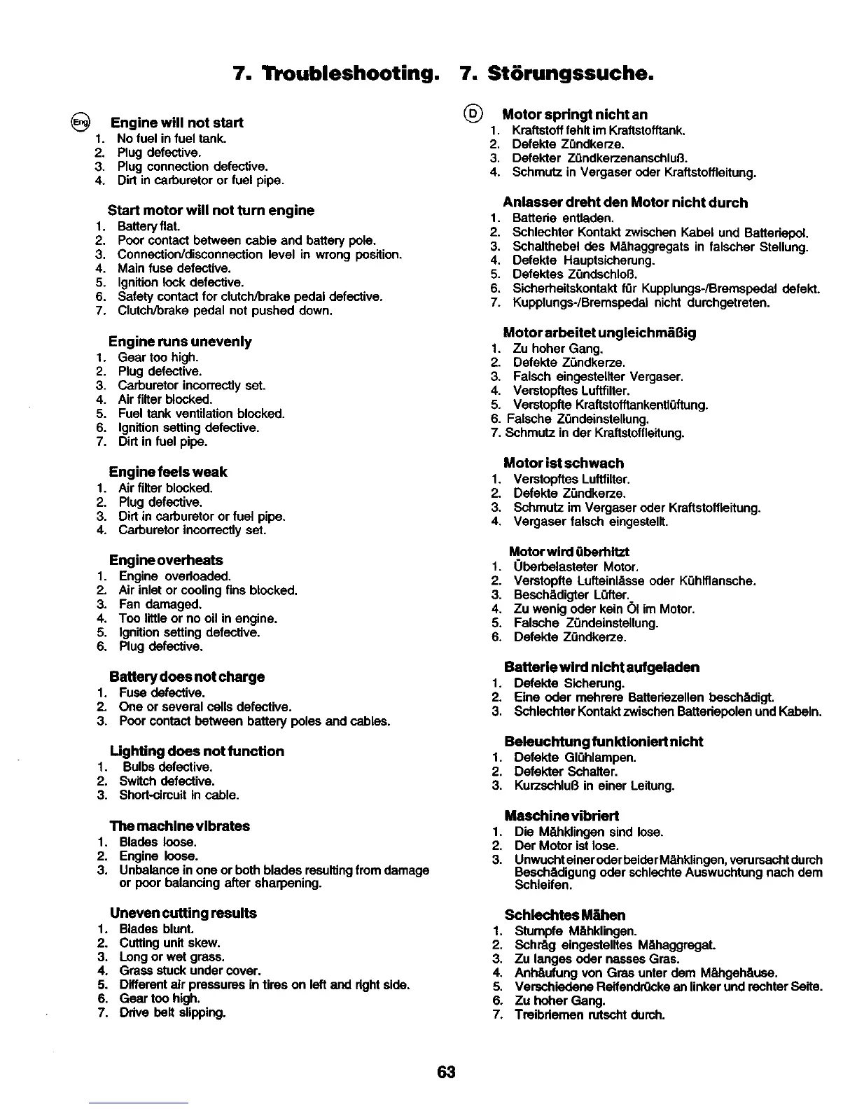 4. Schmutz in Vergaser oder Kraftstoffleitung.
