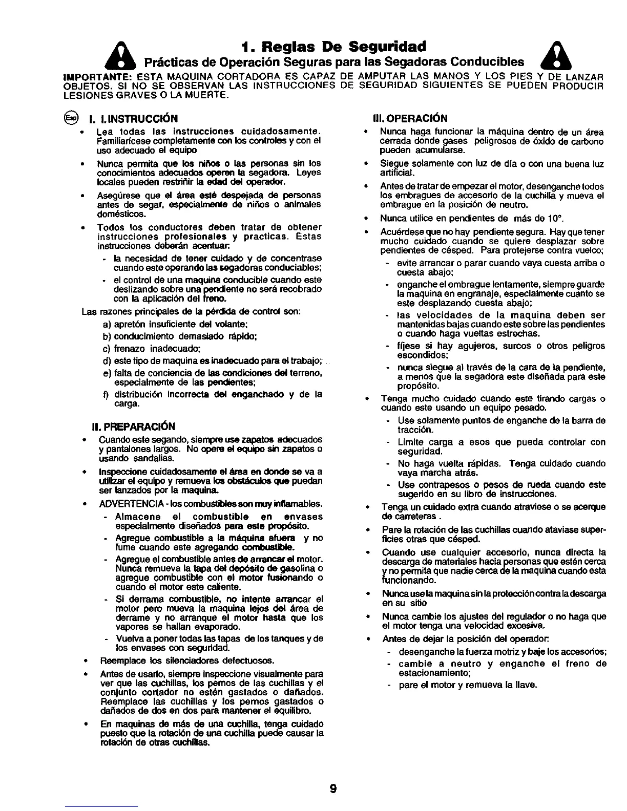Pr cticas de Operaci6n Seguras para las Segadoras Conducibles