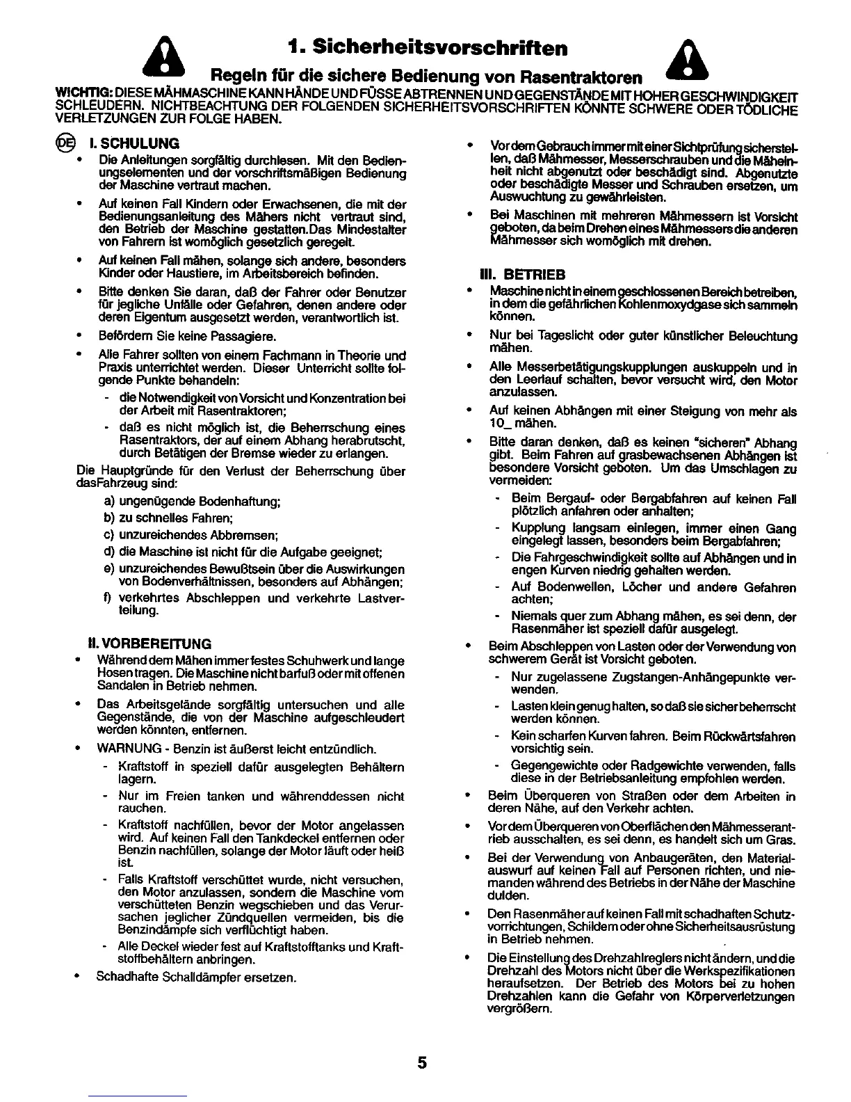 Regeln for die sichere Bedienung von Rasentraktoren