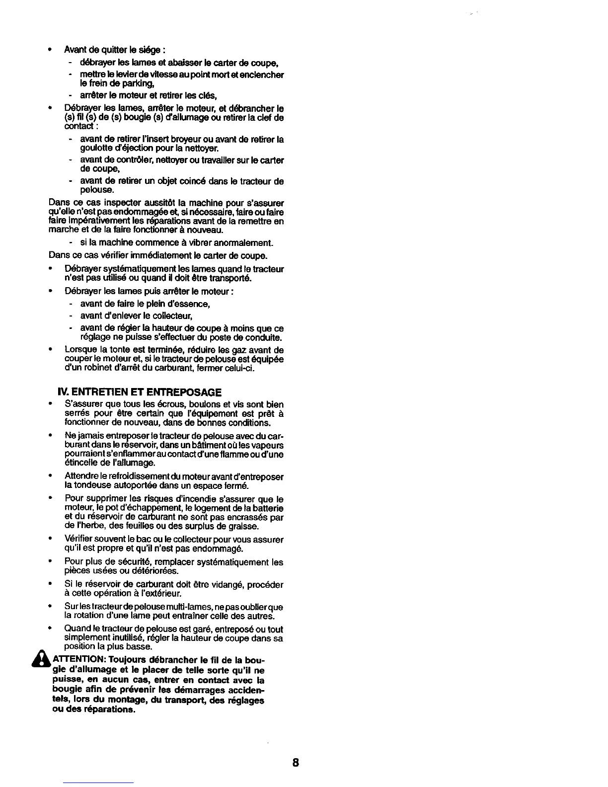 • Quand le tracteur de pelouse est gar_ entmpos_ ou tout