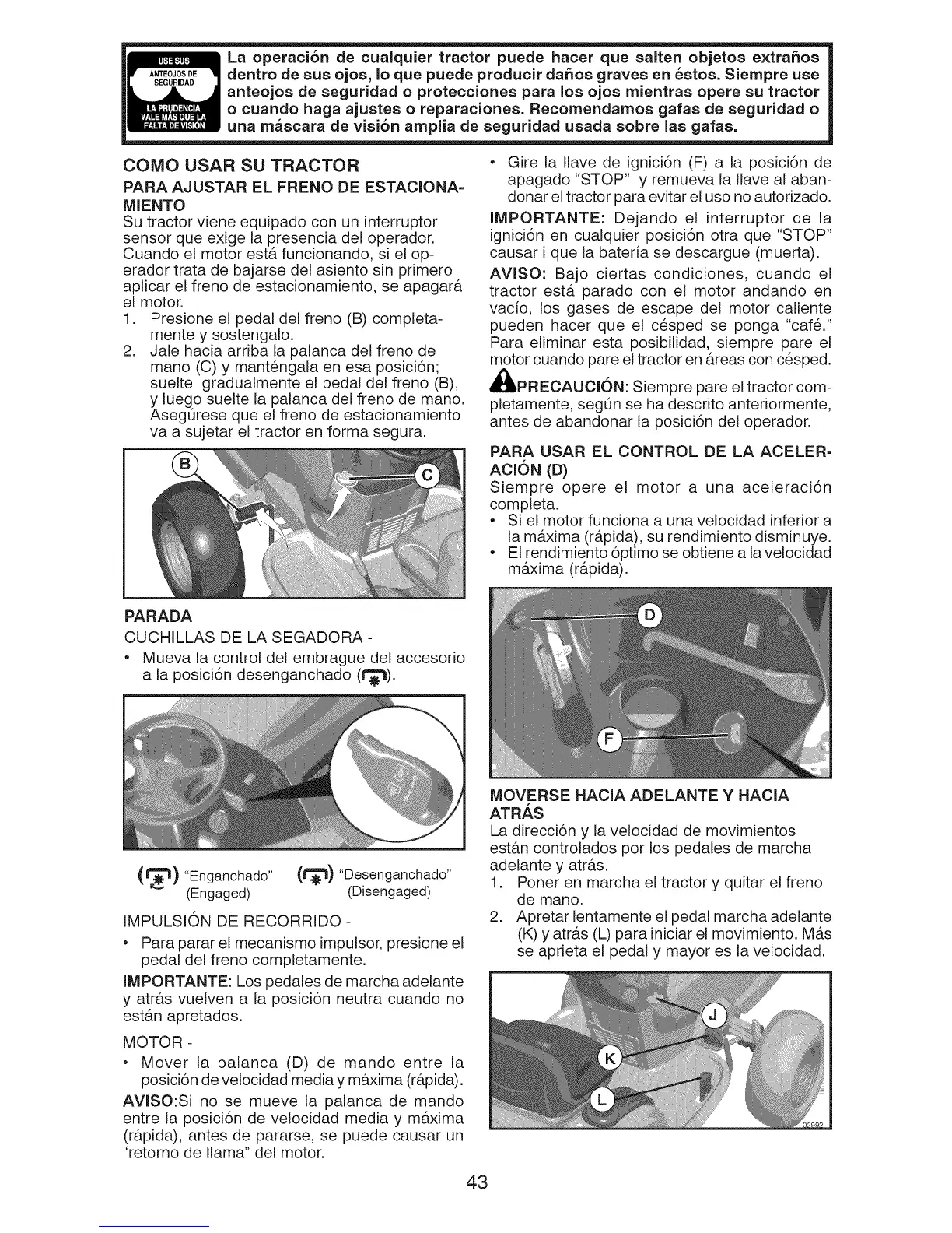 motor cuando pare el tractor en areas con cesped.