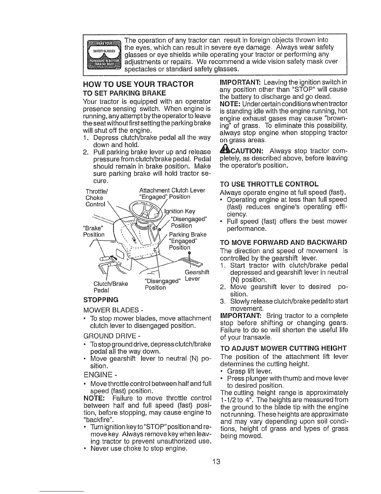 HOW TO USE YOUR TRACTOR