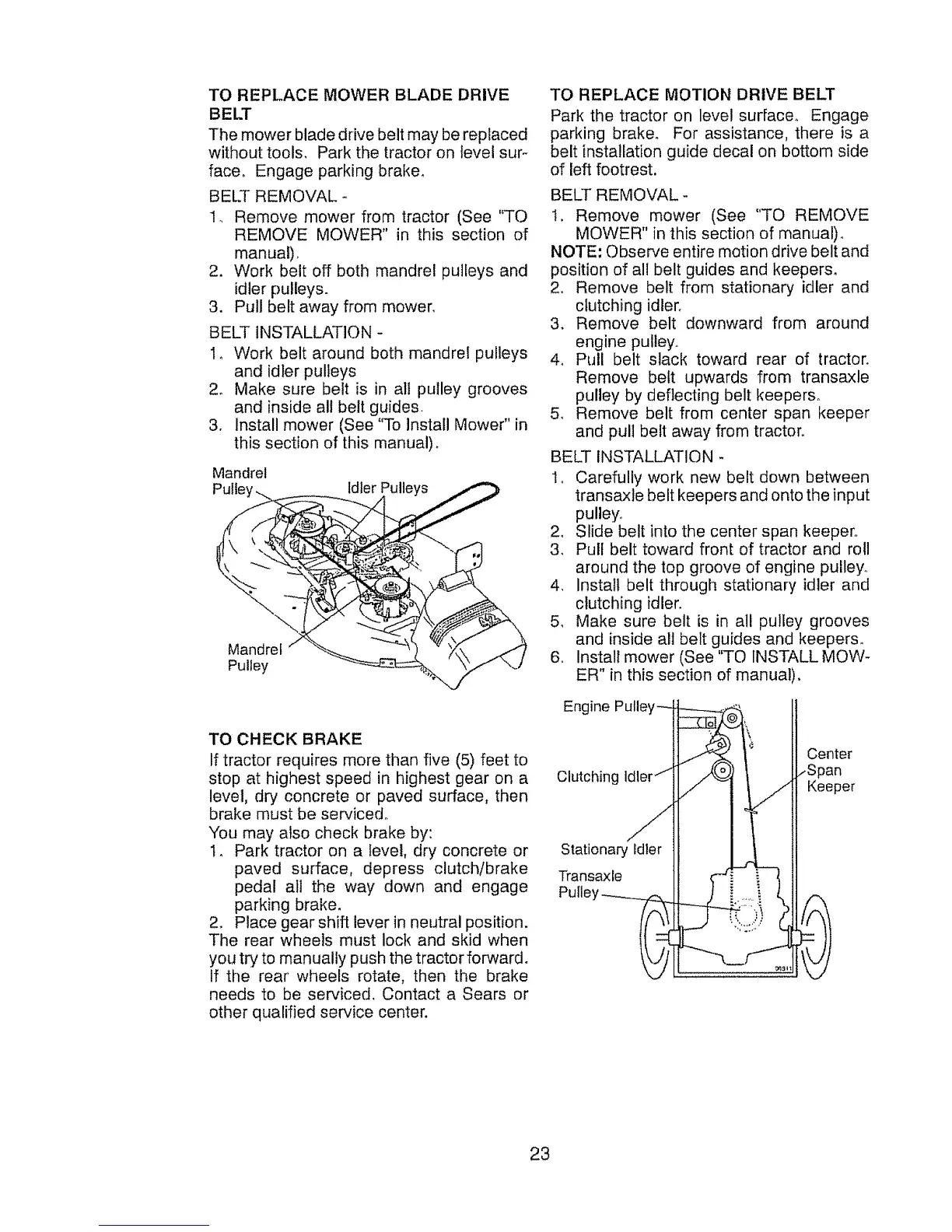 4o Pull belt slack toward rear of tractor.
