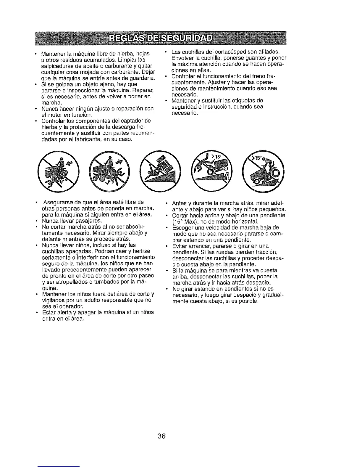• Mantener la m&quina libre de hierba, hojas "