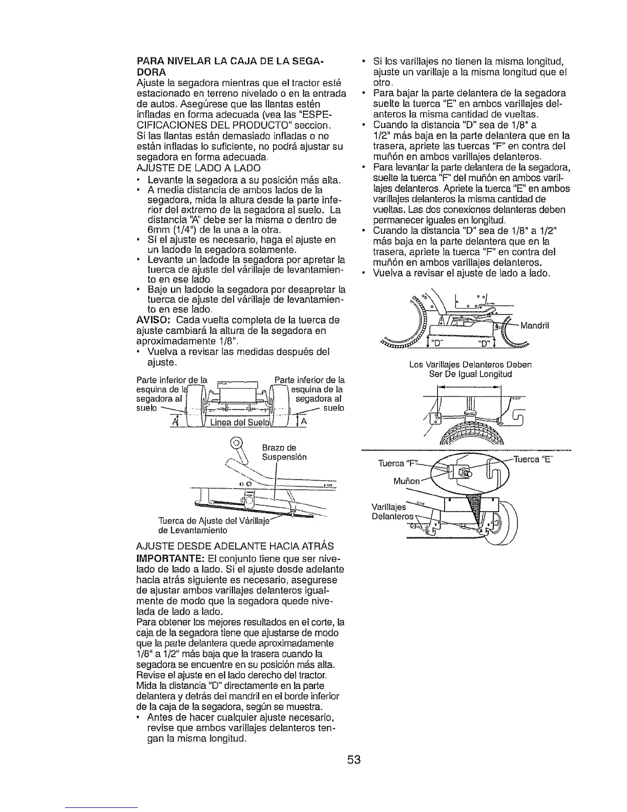 de ajustar ambos varillajes delanteros igual-
