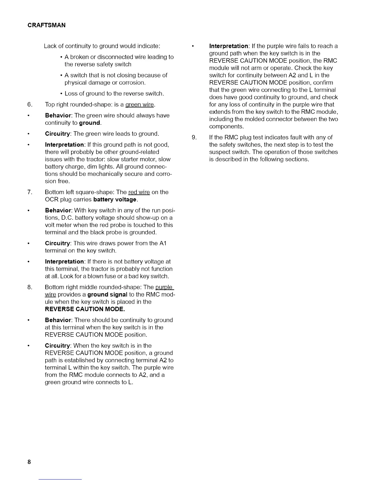 battery charge, dim lights. All ground connec-