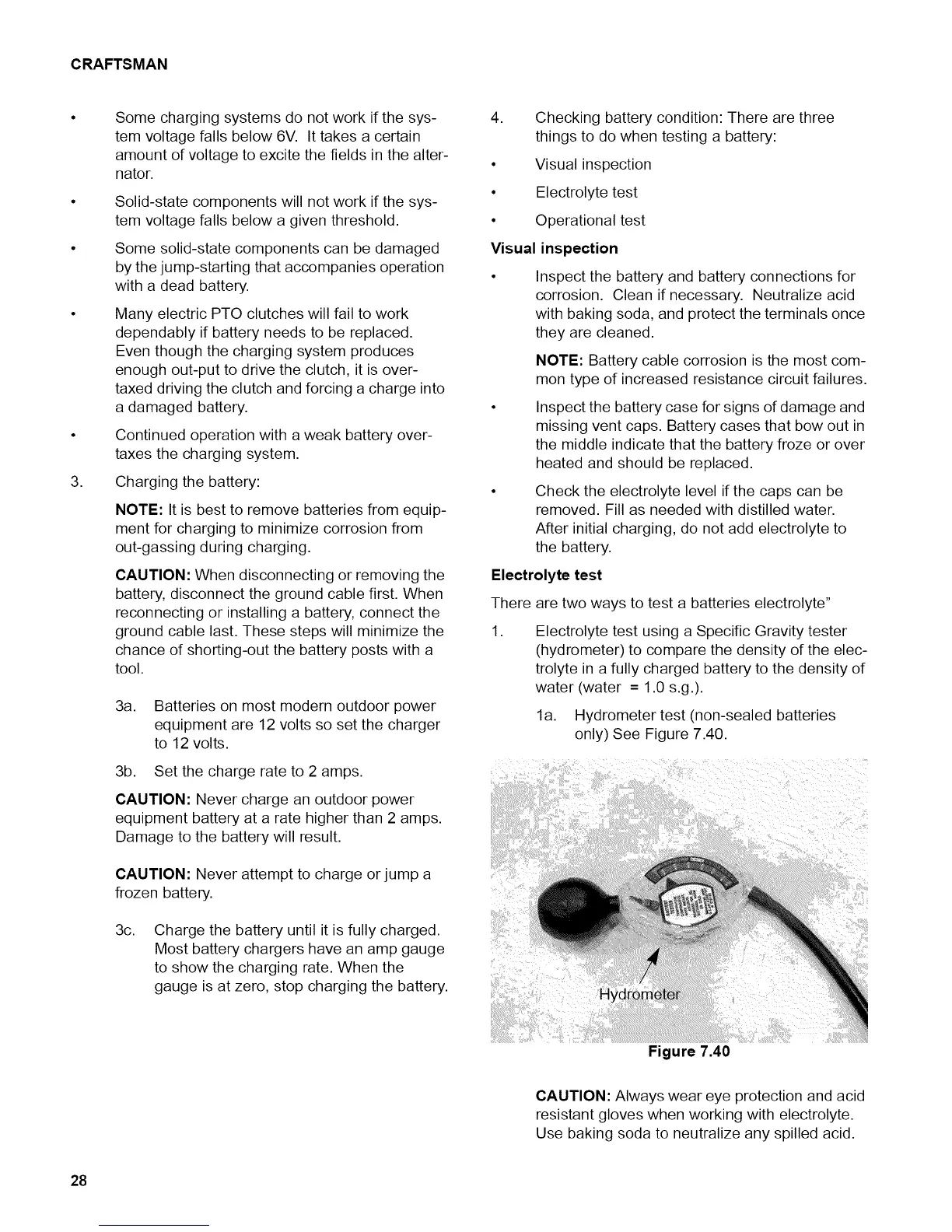 la. Hydrometer test (non-sealed batteries