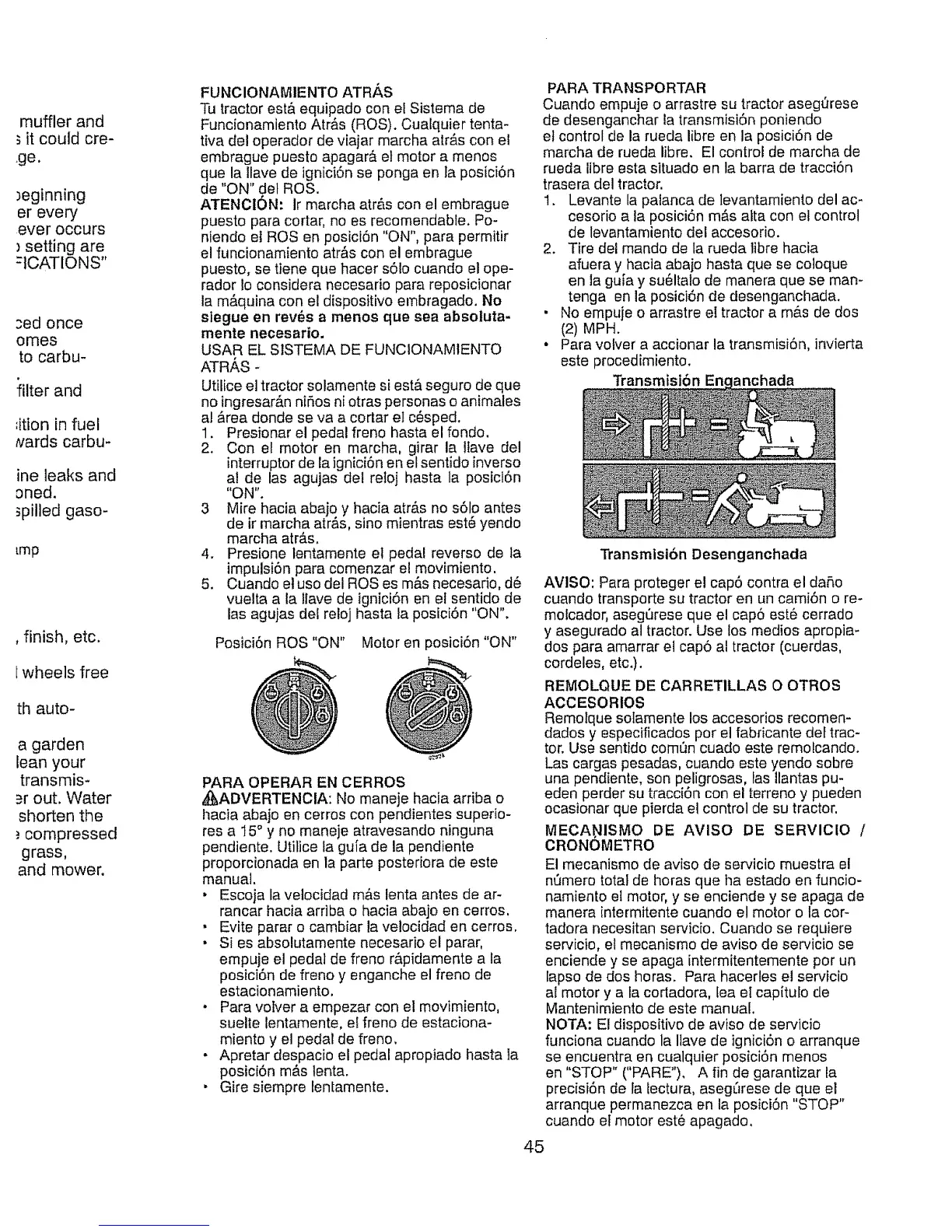Posici6n ROS "ON" Motor en posici6n "ON"