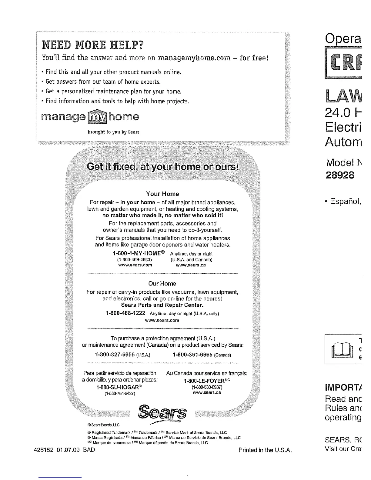 ® Registered Tiadernart_ t TM Trademark l s_ Service Mark e[ Sears Brands, LLC