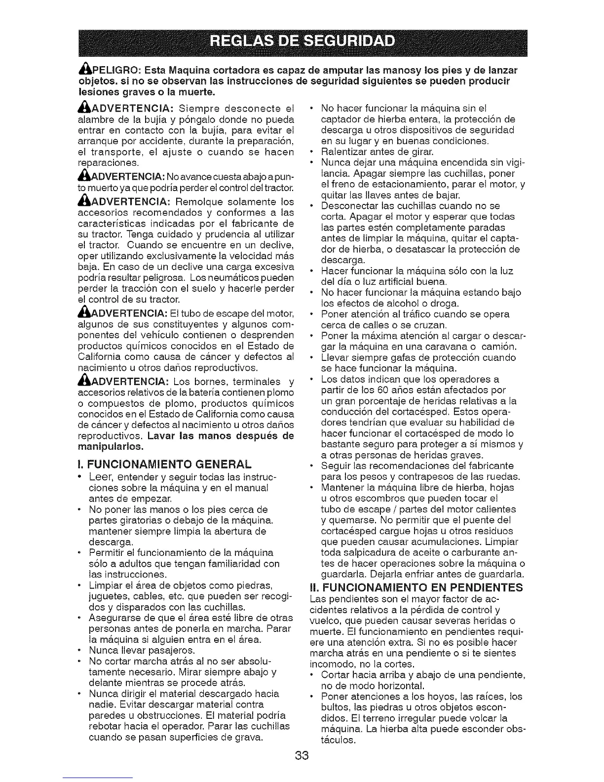 conducci6n del cortacesped. Estos opera-