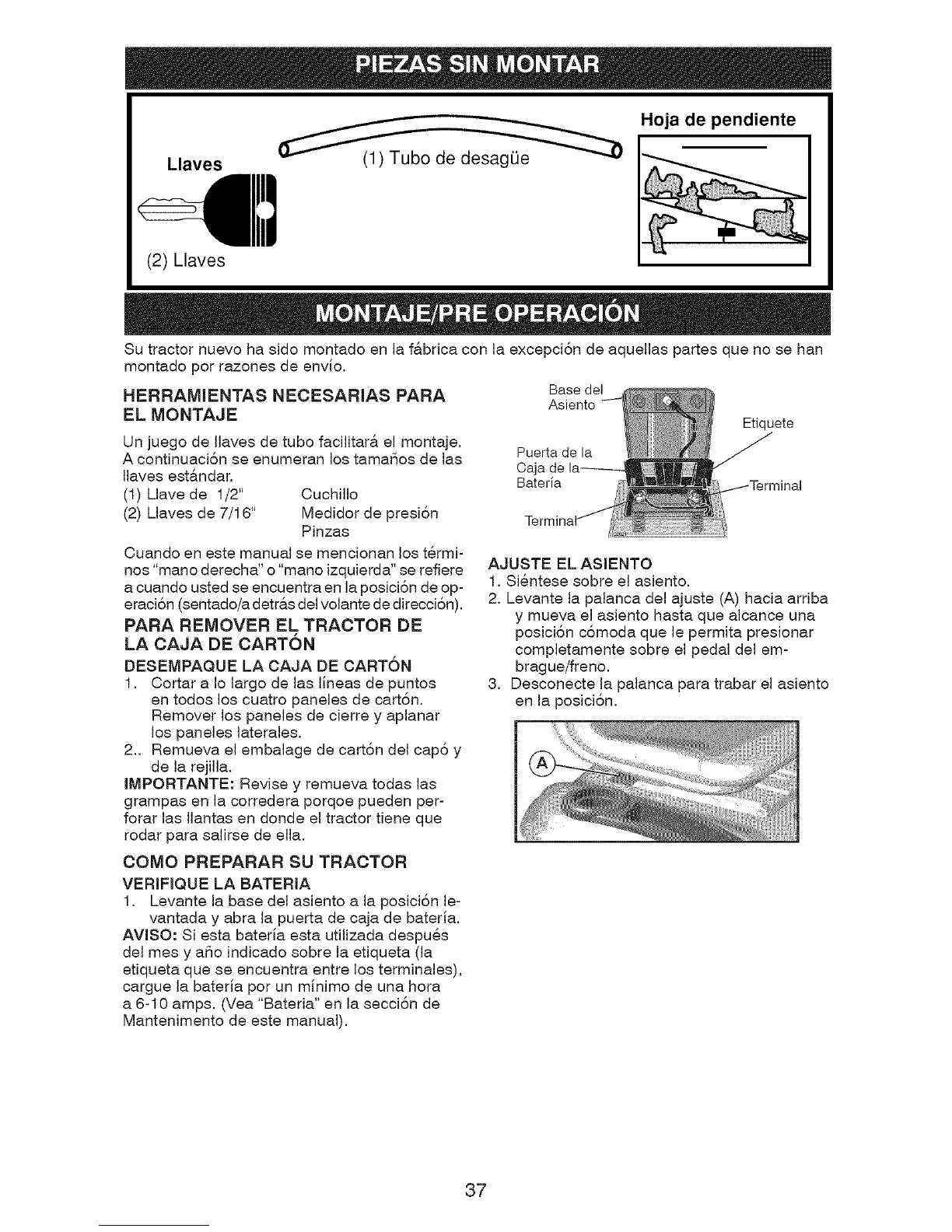 Su tractor nuevo ha sido montado en la f&brica con la excepci6n de aquellas partes que no se han