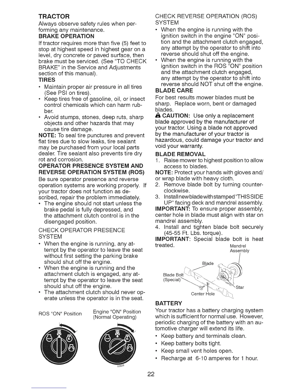 IMPORTANT: Special blade bolt is heat