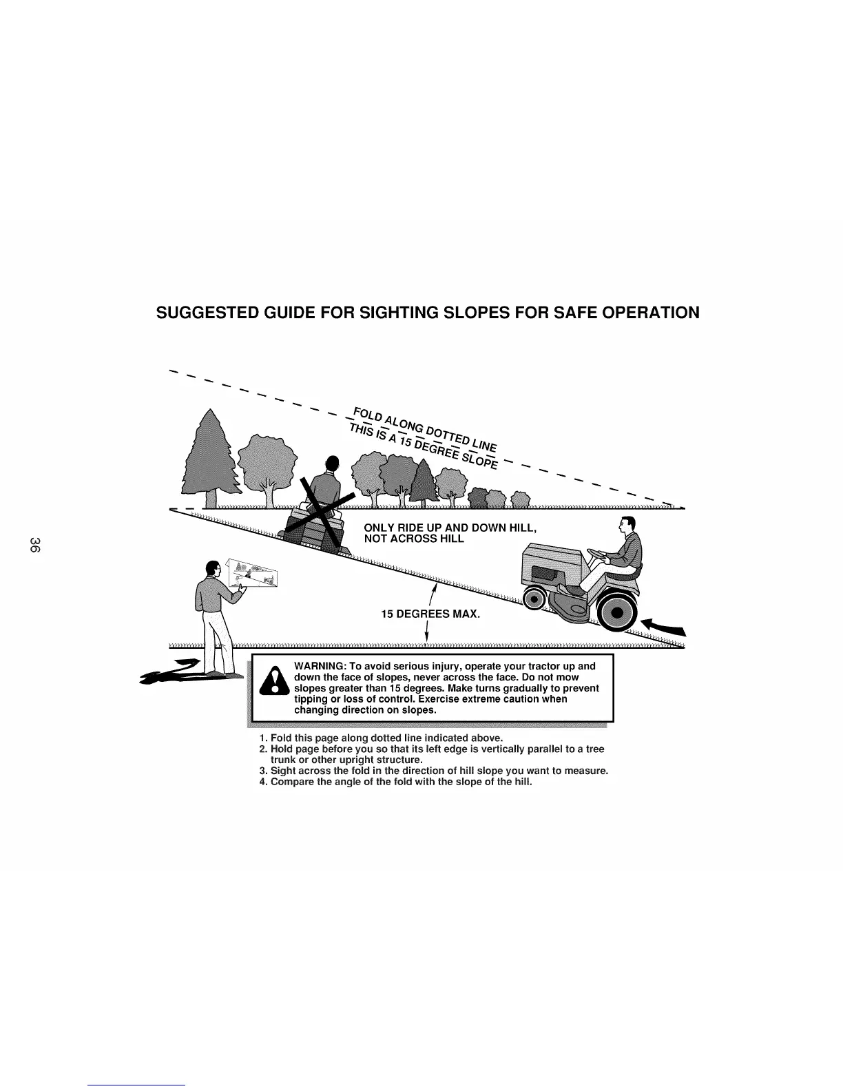 down the face of slopes, never across the face. Do not mow