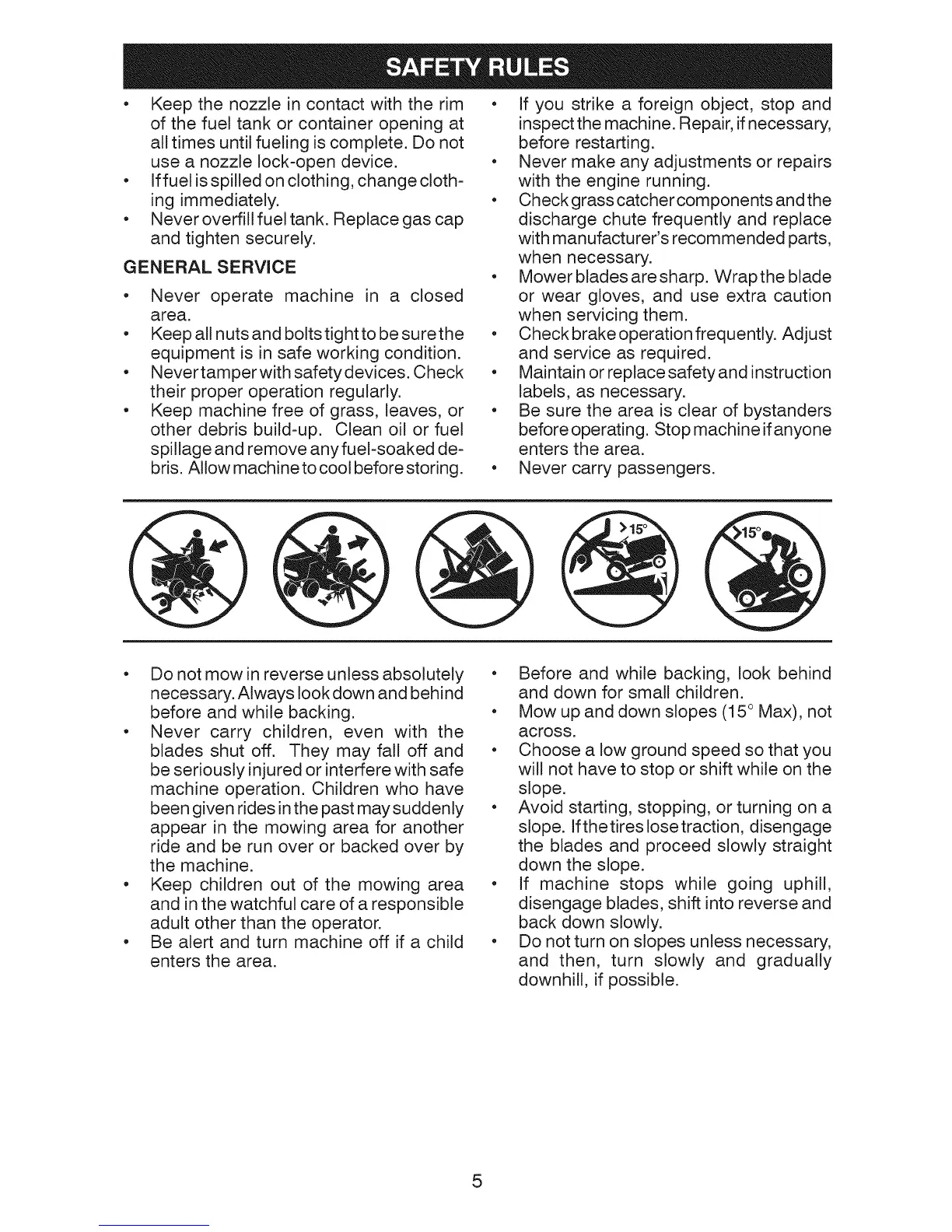 • Do not mow in reverse unless absolutely