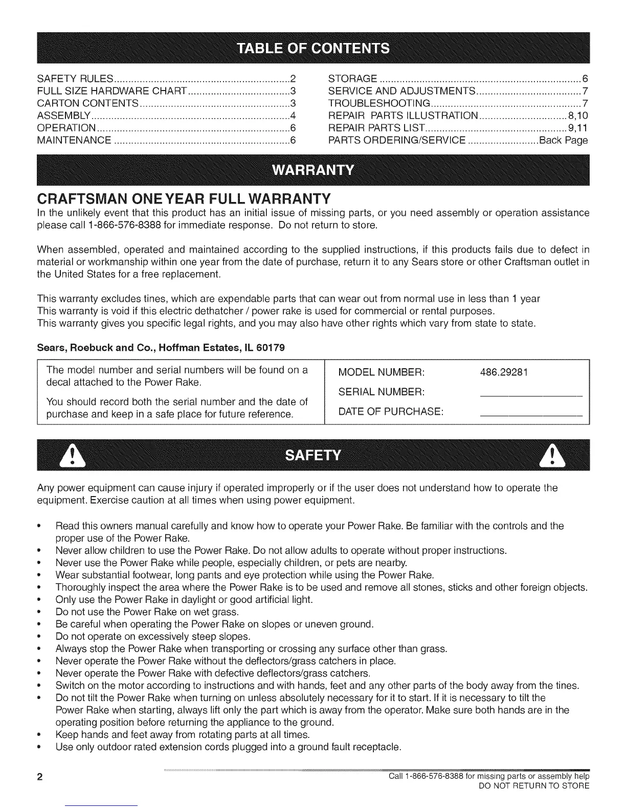 material or workmanship within one year from the date of purchase, return it to any Sears store or other Craftsman outlet in