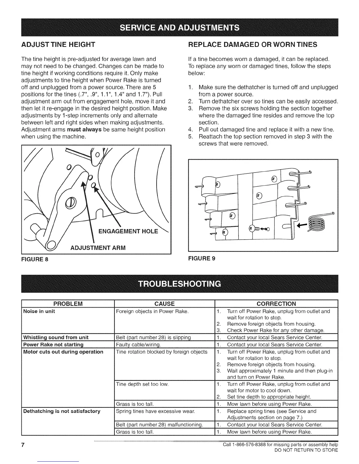 ADJUST TINE HEIGHT REPLACE DAMAGED OR WORN TINES