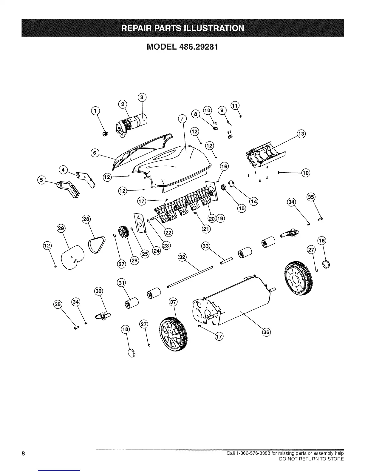 8 Call 1-866-576-8388 for missing parts or assembly help