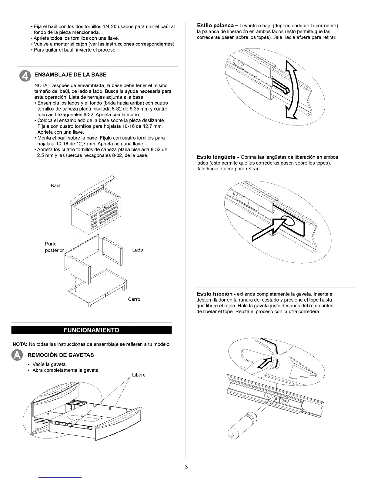 NOTA: No todas las instrucciones de ensamblaje se refieren a tu modelo.