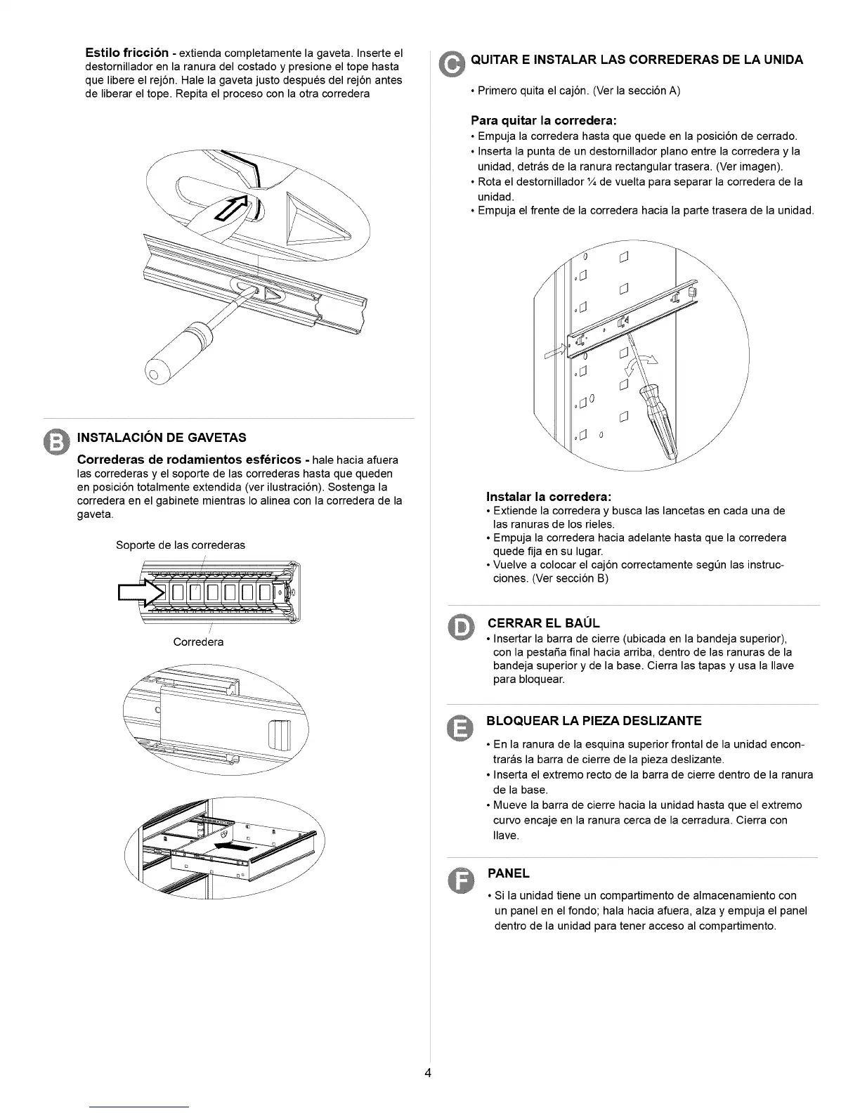 Estilo friccion - extienda completamente la gaveta. Inserte el