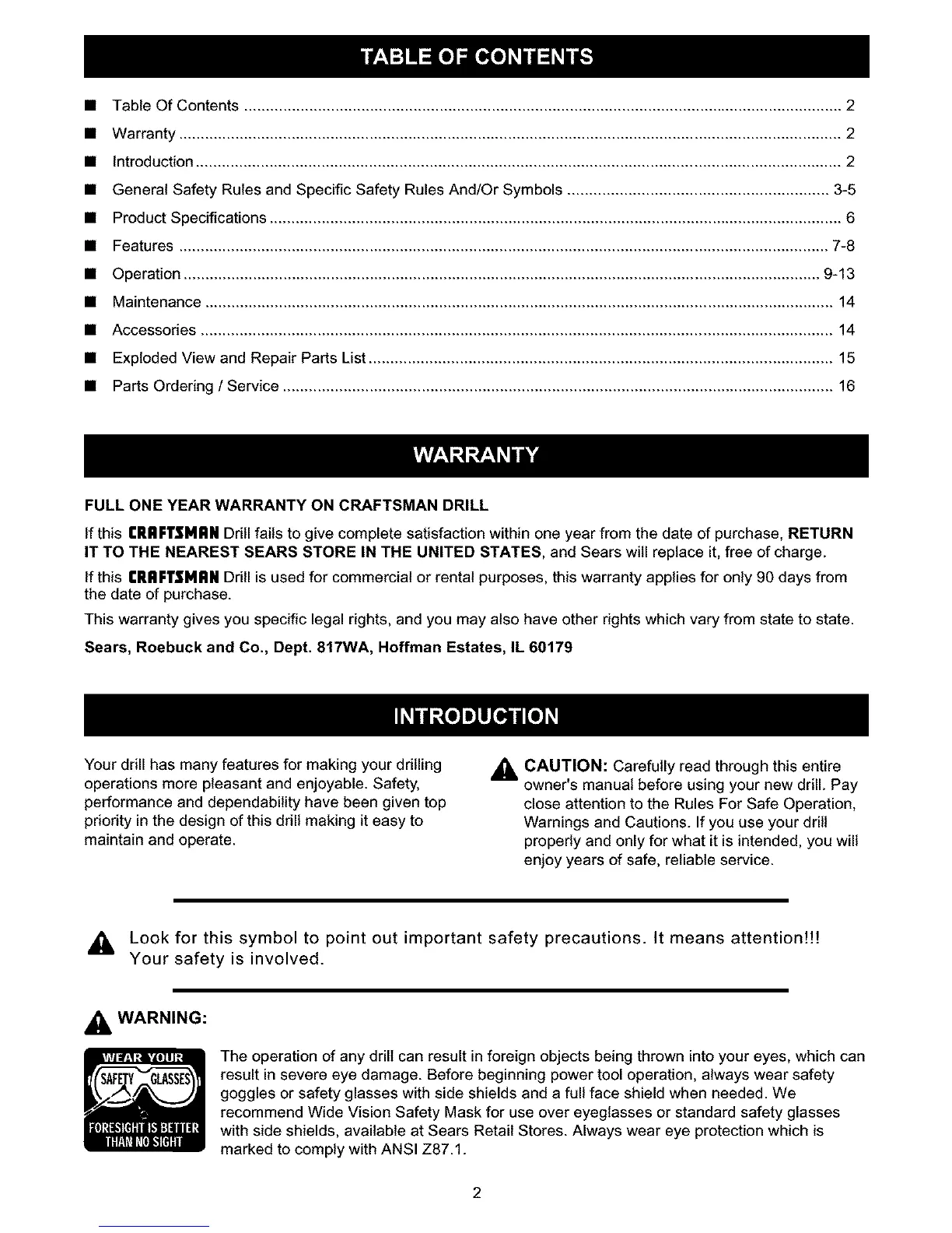 FULL ONE YEAR WARRANTY ON CRAFTSMAN DRILL