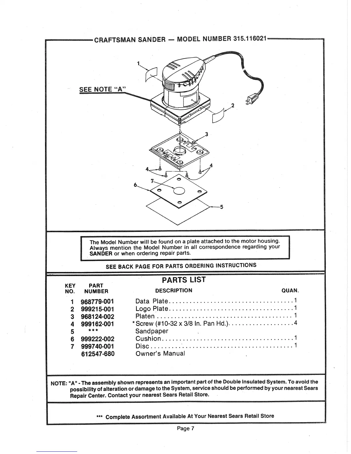 Craftsman 315.116021 - Repair Parts Information