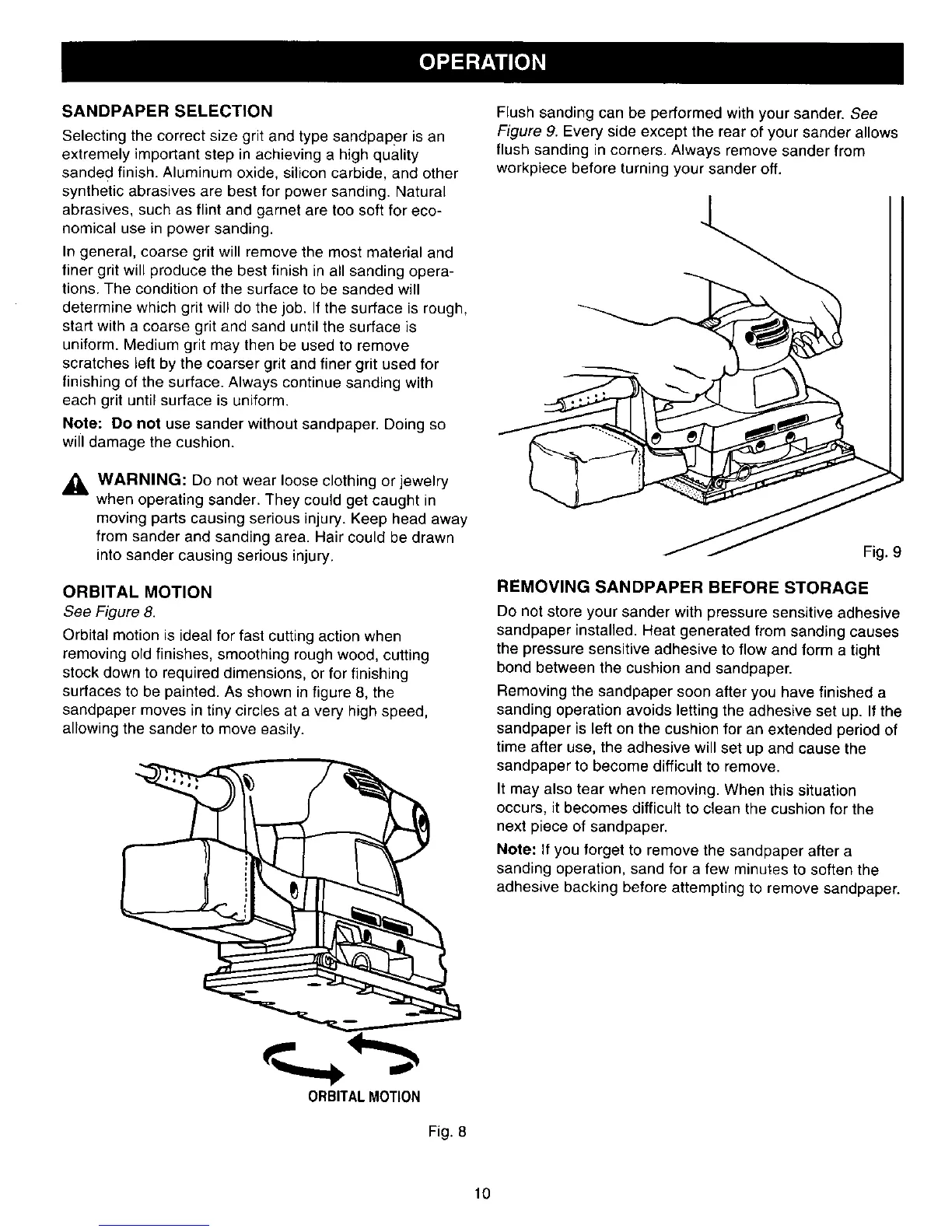 Note: Do not use sander without sandpaper. Doing so