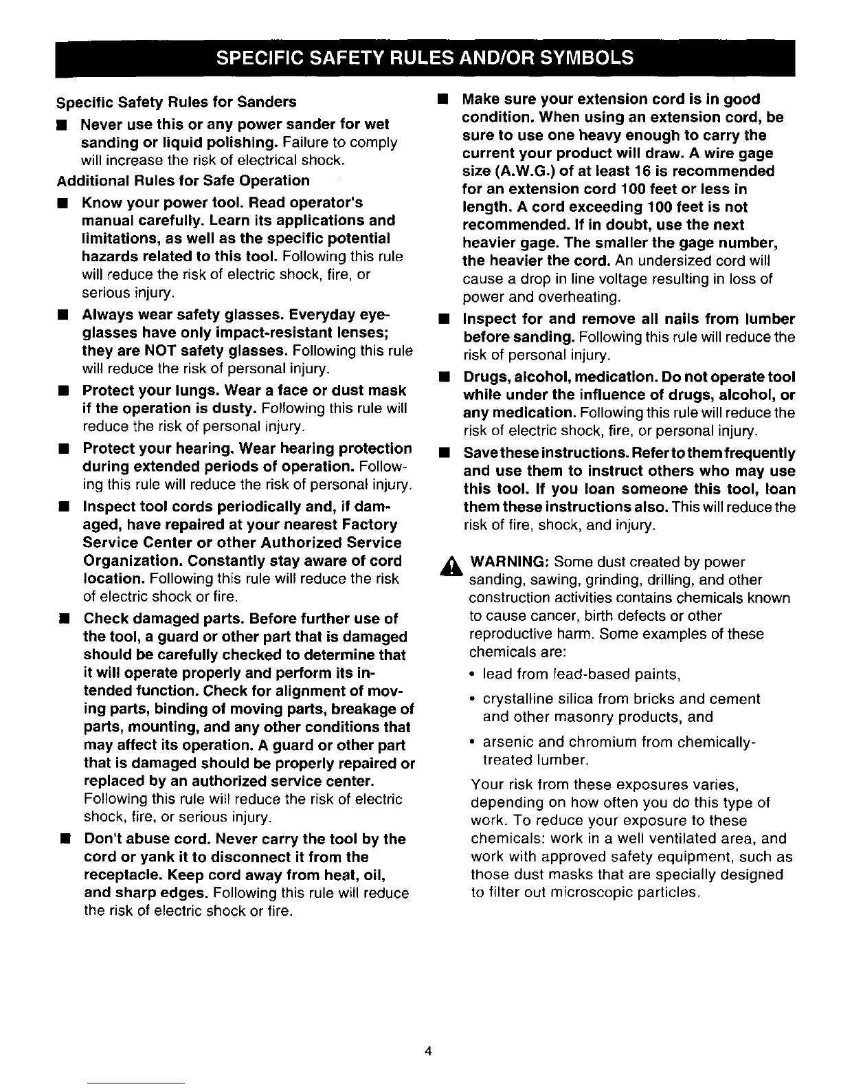 Specific Safety Rules for Sanders
