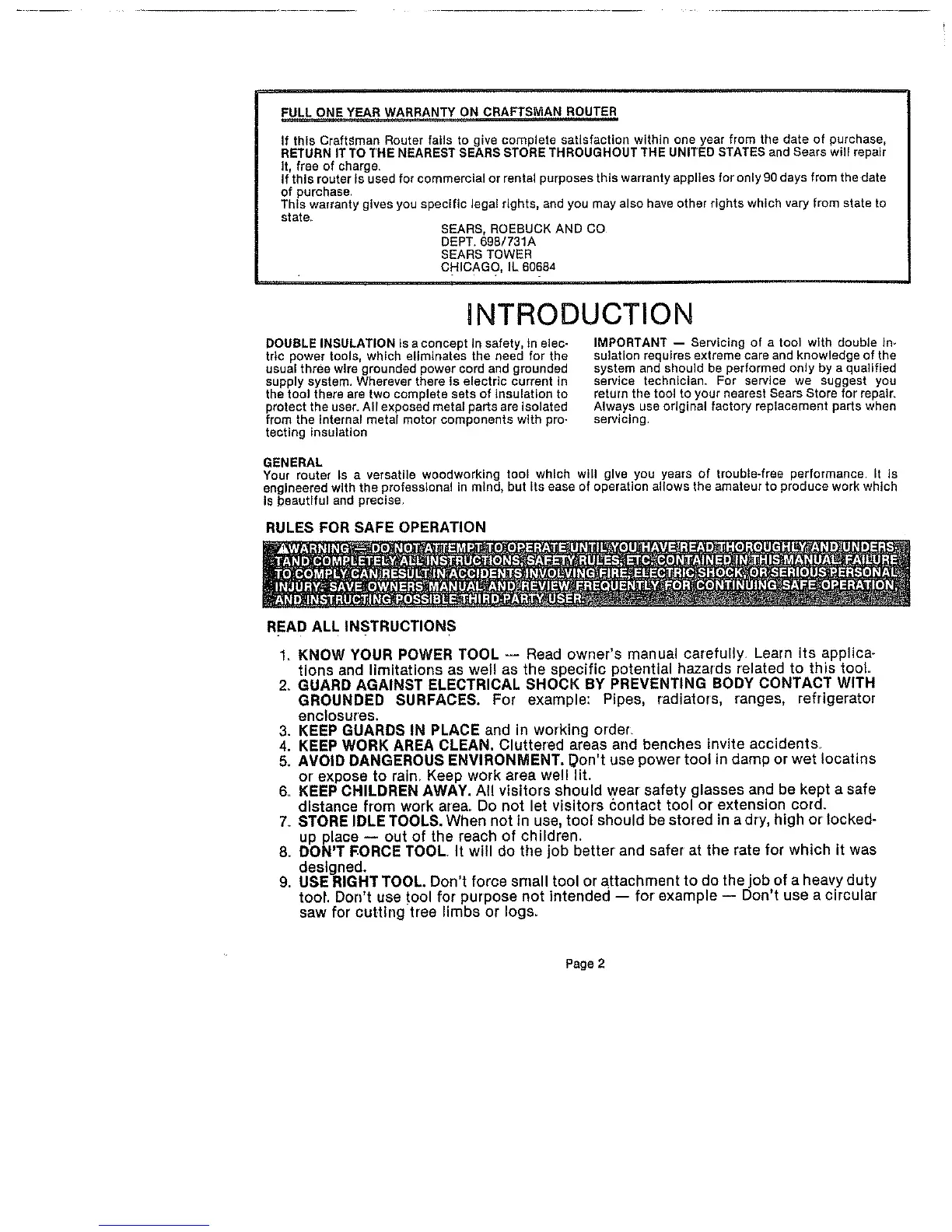 FULL ONE YEAR WARRANTY ON CRAFTSMAN ROUTER