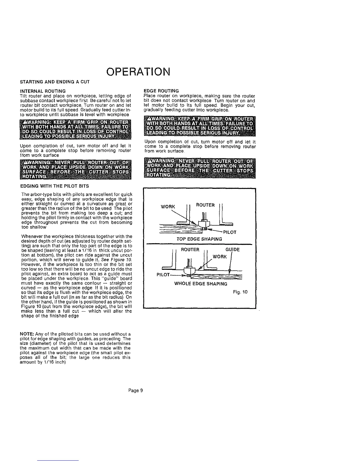 pilot against the workpiece edge (the small pilot ex-