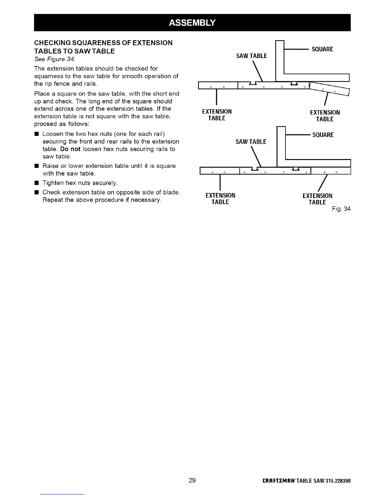 • Raise or lower extension table until it is square
