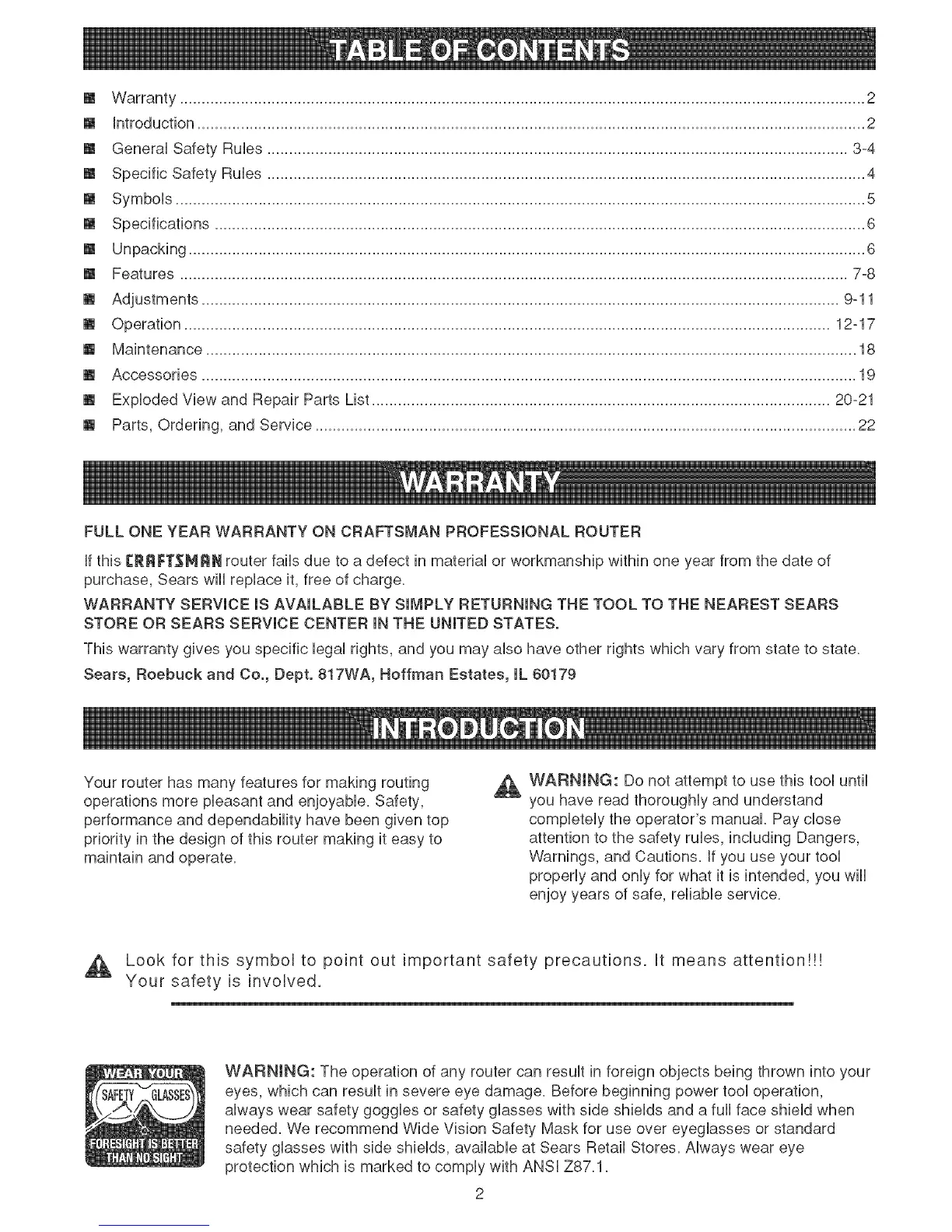 FULL ONE YEAR WARRANTY ON CRAFTSMAN PROFESSIONAL ROUTER