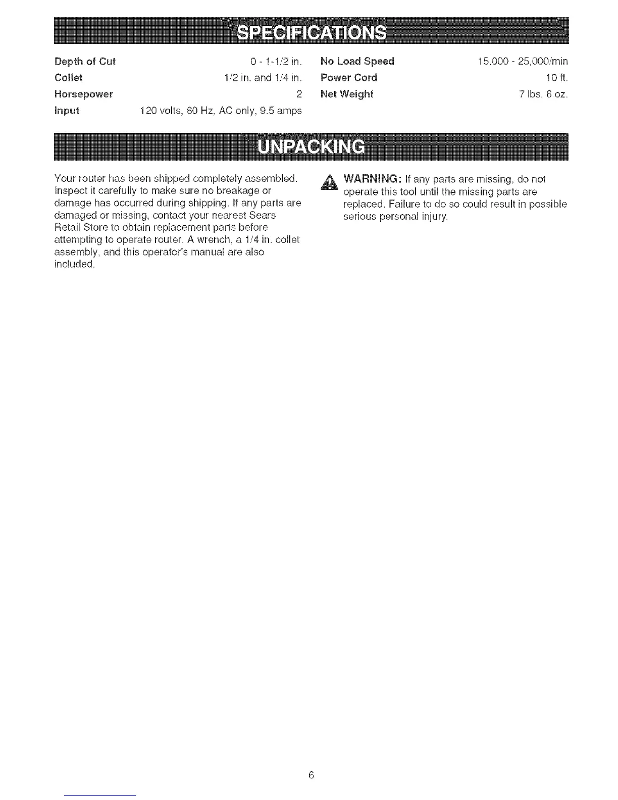 damaged or missing, contact your nearest Sears
